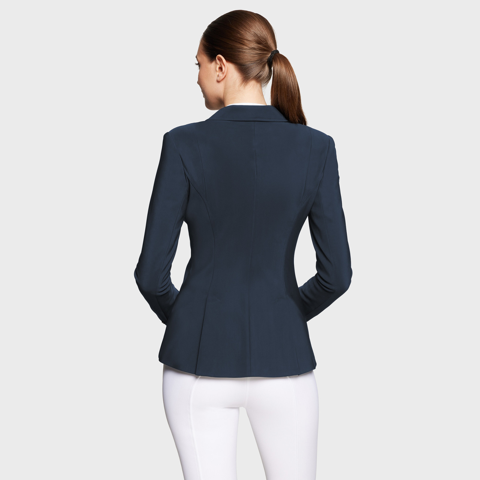 En elegant och funktionell tävlingskavaj för ryttare som söker en tidlös stil kombinerat med prestanda, komfort och hållbarhet på tävling och i konkurrenssammanhang. Två diskreta framfickor med dragkedja ger en ren och stilfull silhuett.