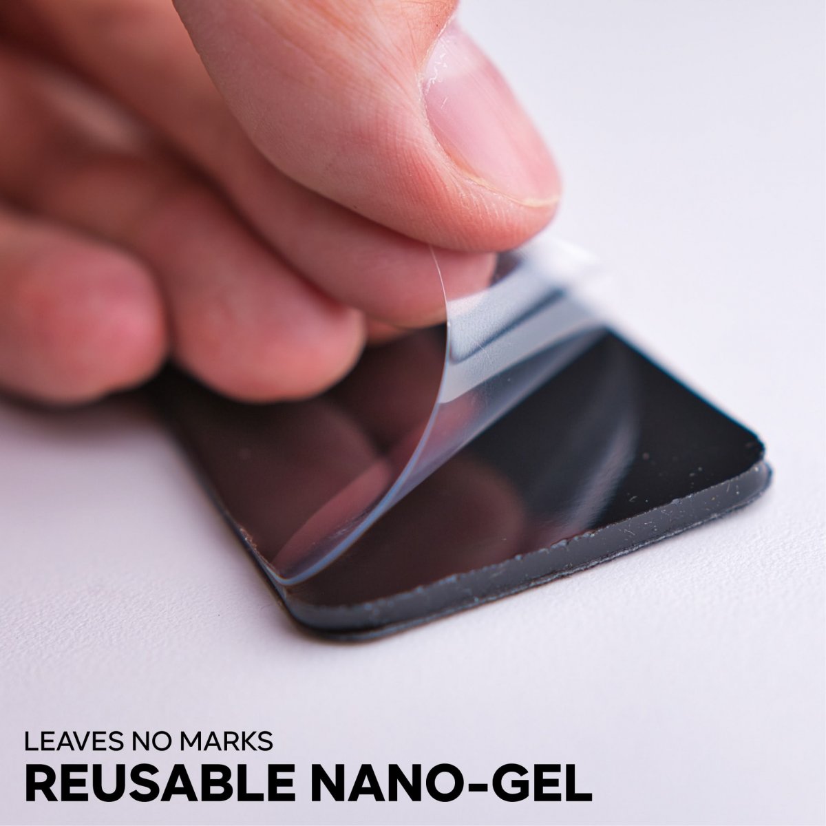 Baksida av ”Nano-Gel” vilket fäster på de flesta material och lämna inga märken efter sig.
