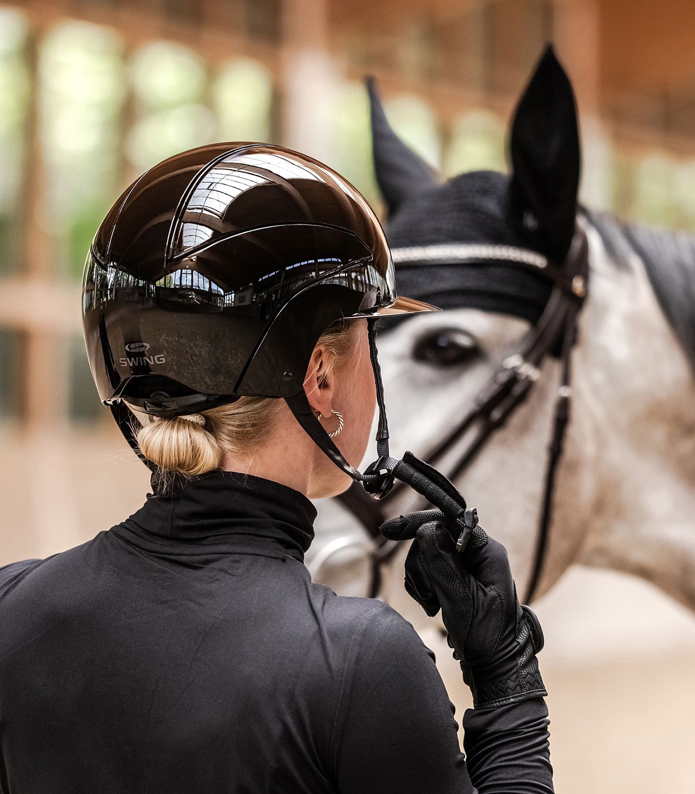 Med SWING H24 Lady Glossy får du en ridhjälm som förenar säkerhet, komfort och stil – perfekt för den moderna ryttaren som inte kompromissar.