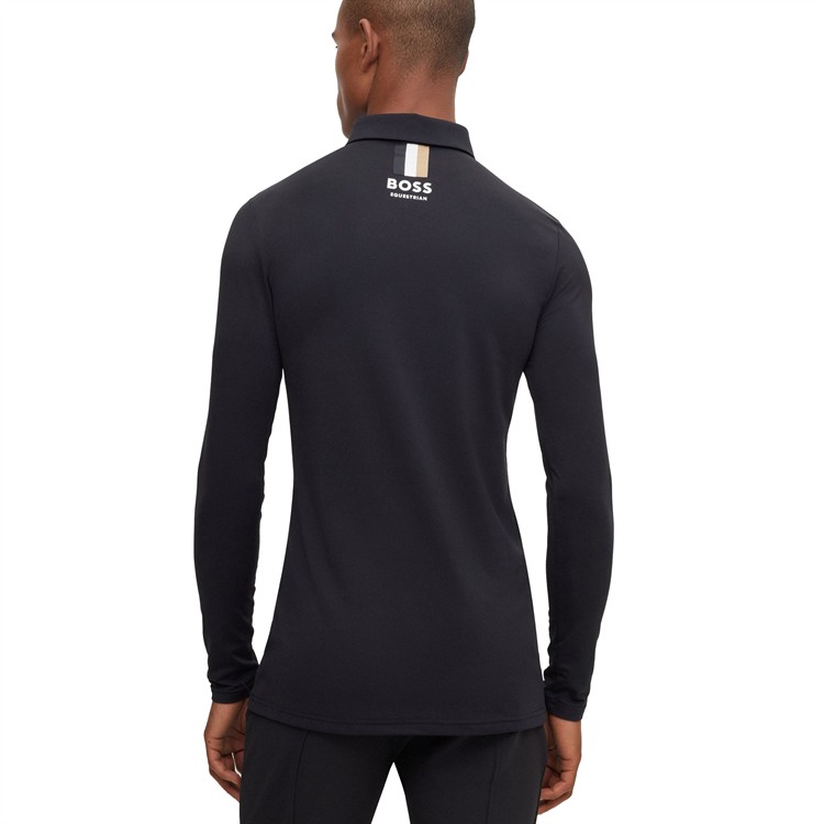 En sportig och välsittande ridtröja för träning med en modern, distinkt design. Elton Signature Stripe från BOSS Equestrian är en långärmad träningspolotröja i slim fit, tillverkad i ett ventilerande material med hög elasticitet för optimal komfort och rörelsefrihet.